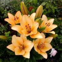 При виде лилии Салмон Классик, относящейся к ЛО-гибридам, сразу же вспоминаются любимые многими абрикосы. Такие же сочные, нежные и ароматные, как крупные бутоны растения. С наступлением лета на стройном 80-сантиметровом стебле начинает распускаться около десятка нежно-оранжевых соцветий, состоящих из 6 лепестков с ненавязчивым крапом. По форме раскрывшиеся бутоны Салмон Классик так напоминают цветущую ваниль.